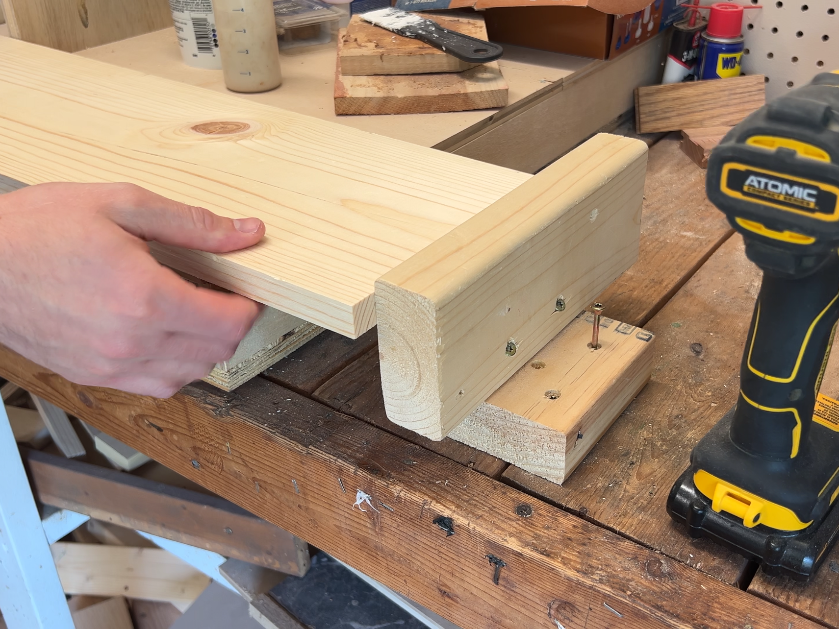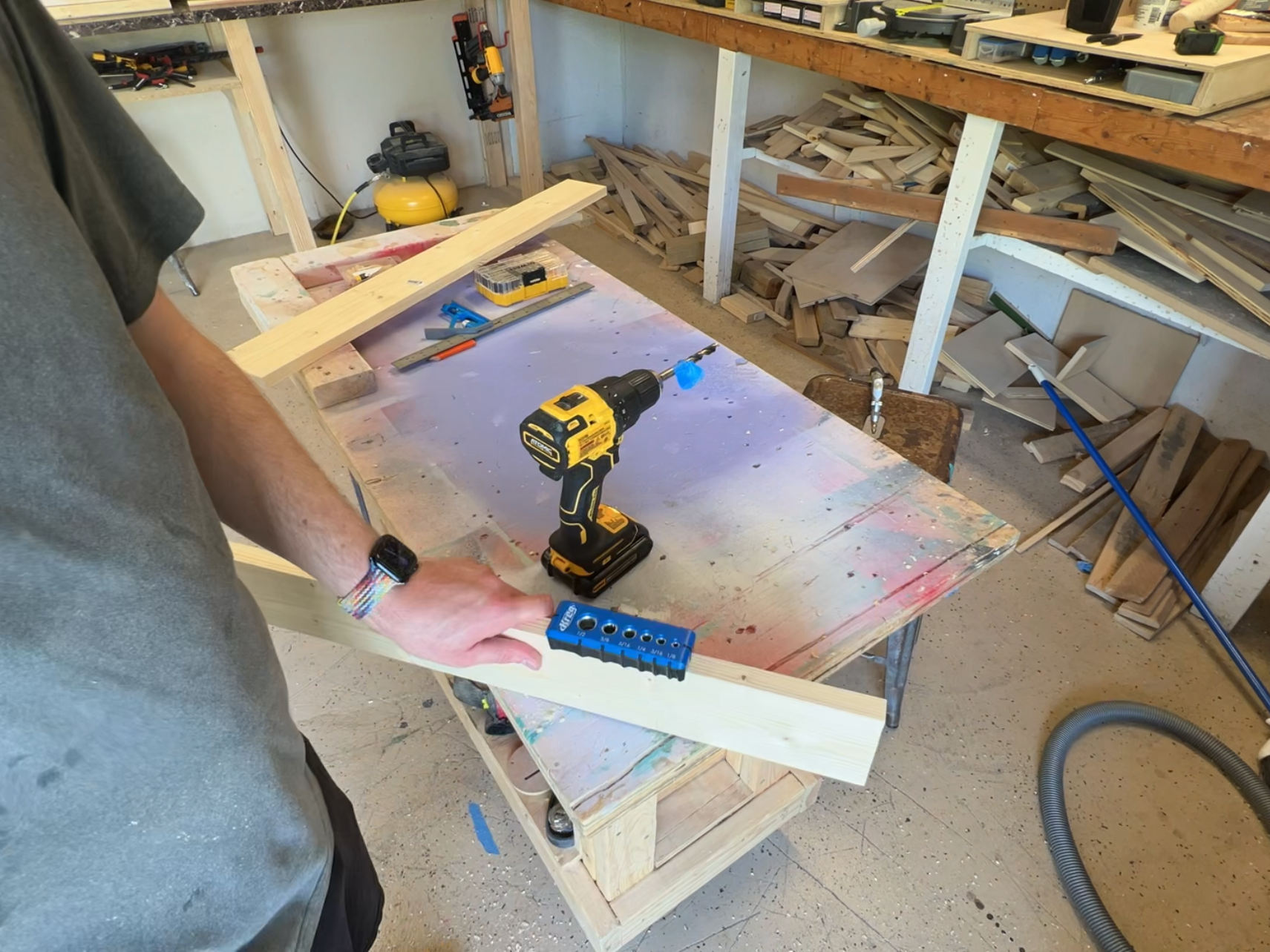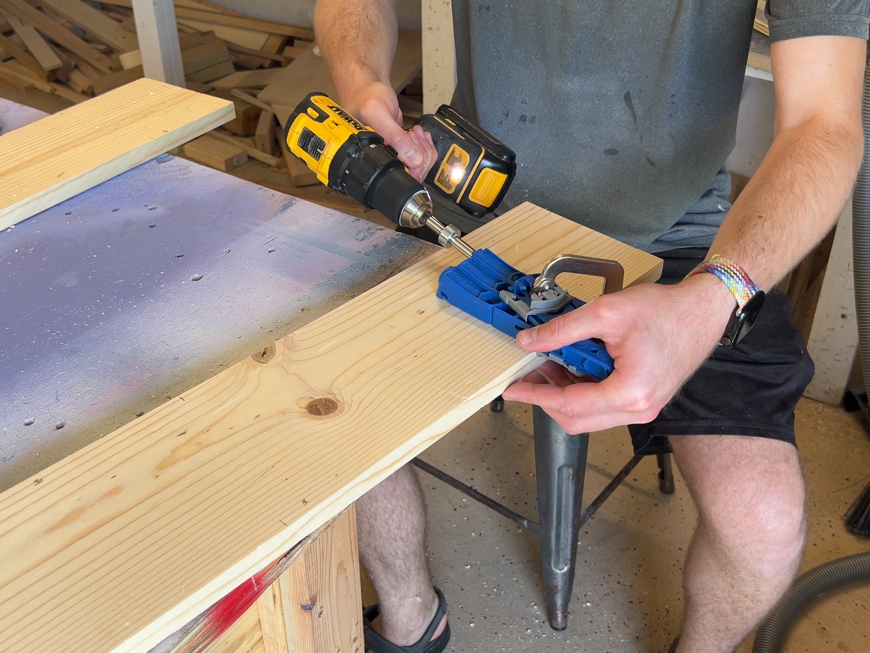 Similarly to dowels, I lined up my boards but flipped them over to drill into the back sides. I made 3 pocket holes on all the joint sides (no need to do the top and bottom). The boards will screw into each other and once glued they’ll be super tight.